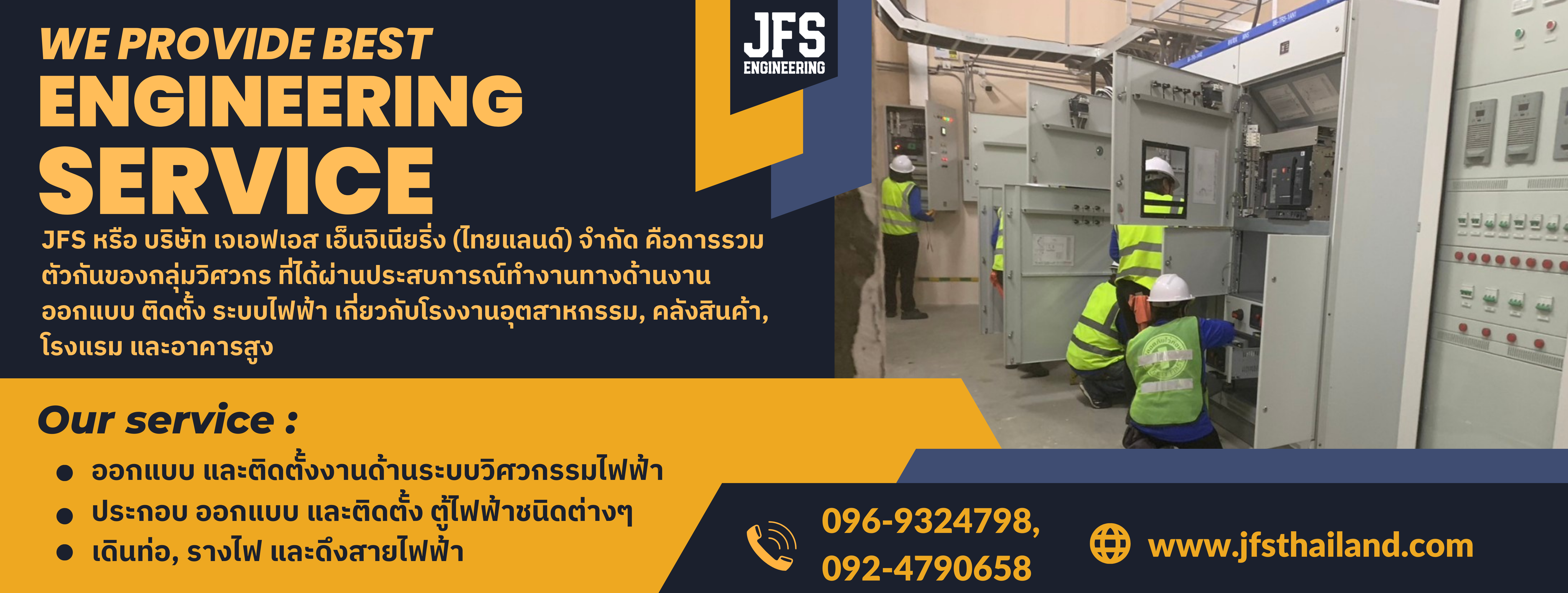 เจเอฟเอสไทยแลนด์ เพราะเราคือผู้เชี่ยวชาญด้านงานระบบวิศวกรรมไฟฟ้า ซื่อสัตย์ ซื่อตรง เน้นคุณภาพ บริการ ส่งมอบงานตรงเวลา และความสะดวกสบายของลูกค้า ด้วยราคายุติธรรม JFS จากการรวมตัวกันของกลุ่มวิศวกร ที่ได้ผ่านประสบการณ์ทำงานทางด้านงานออกแบบ ติดตั้ง ระบบไฟฟ้า เกี่ยวกับโรงงานอุตสาหกรรม, คลังสินค้า, โรงแรม และอาคารสูง เพื่อเน้นประสิทธิภาพการทำงานด้านไฟฟ้า จึงทำให้เราก่อตั้งบริษัท JFS Engineering (Thailand) ขึ้นมาเพื่อทำงานเกี่ยวกับ ระบบไฟฟ้าเป็นหลัก